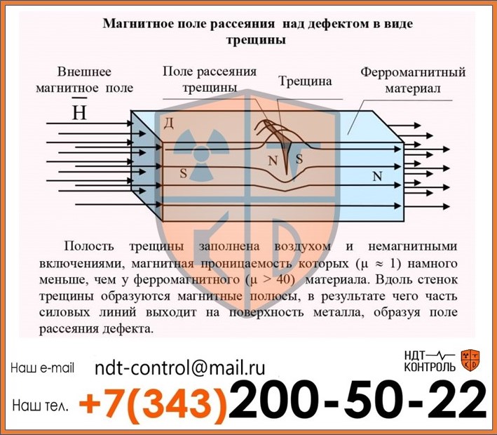 Магнитопорошковый метод неразрушающего контроля — процесс диагностики сварных соединений с целью выявления возможных дефектов. Процесс проведения представляет собой намагничивание исследуемого участка сварного соединения и зоны вокруг него. Контролируемая поверхность намагниченного сварного шва обрабатывается ферромагнитным порошком-суспензией (мокрый способ) или аэрозолем (сухой способ). Частицы нанесенных веществ под воздействием втягивающей силы магнитных полей рассеяния собираются, концентрируются над дефектом и приобретают его очертания. Технология проведения магнитопорошкового неразрушающего контроля прописана в ГОСТ 21105-75 «Контроль неразрушающий. Магнитопорошковый метод» и прочей технической документации. Специалисты Компании «НДТ-контроль» осуществят магнитопорошковый метод неразрушающего контроля на вашем предприятии по низкой цене и на выгодных условиях.